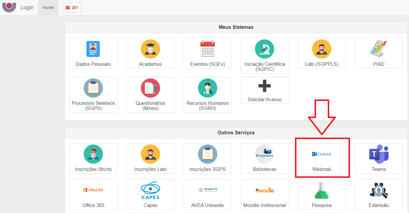 Clique no icone do "Outlook - Webmail", conforme indicado.
