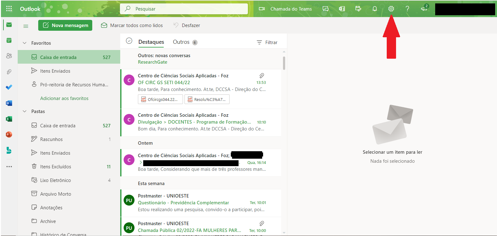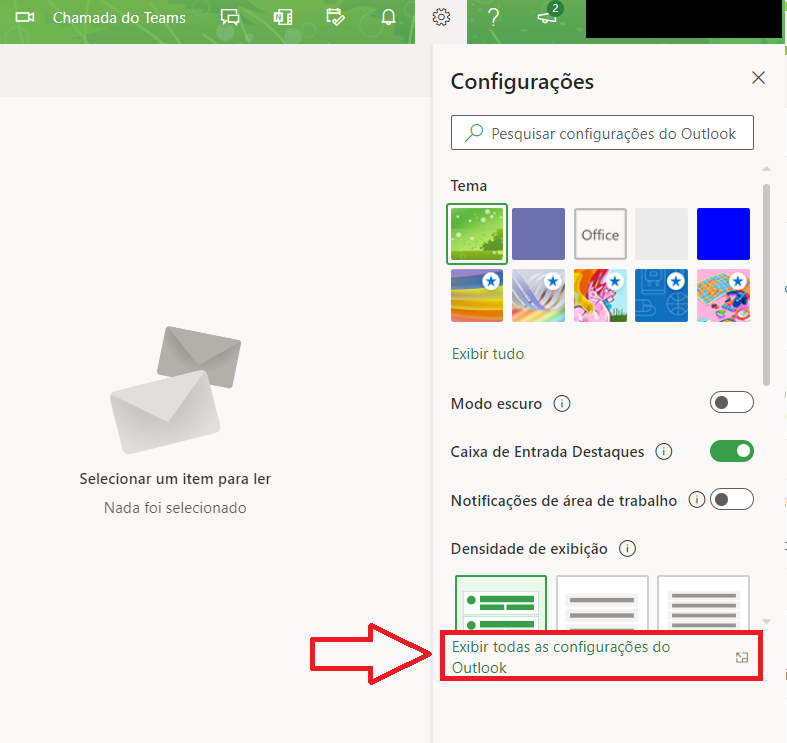 3º Passo - Na aba que será aberta clique na opção "Exibir todas as configurações do Outlook".